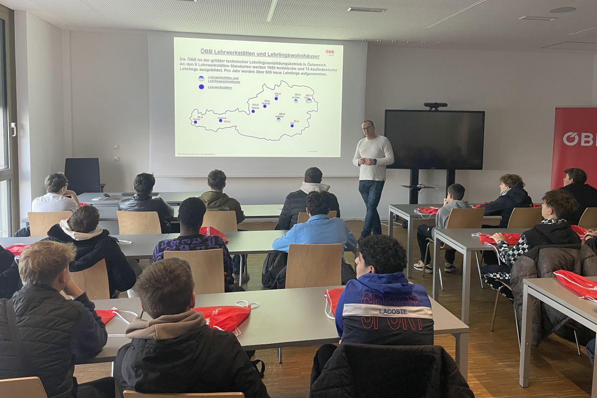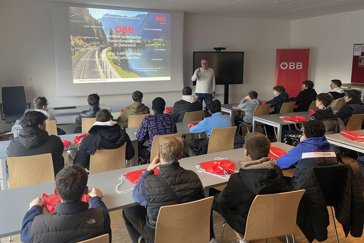 Ein Vortrag durch den Leiter der Lehrlingswerkstätten Herr Wechselberger zu Beginn bot uns einen Überblick und Einblicke über die dort angebotenen Lehrberufe, die Möglichkeiten und Karrierechancen in der ÖBB sowie interessante Daten und Fakten rund um die ÖBB.