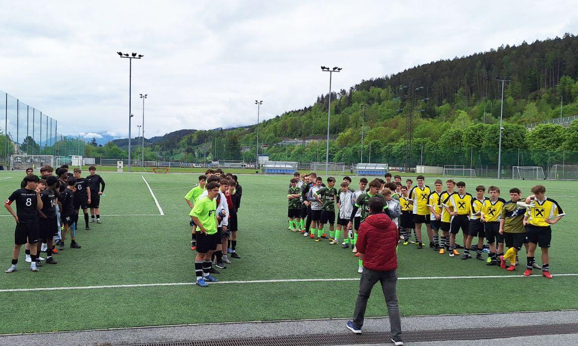 Die Mannschaft unserer Schule schlug sich dabei so gut wie lange nicht mehr. In der Bezirksausscheidung mit den Teams aus Innsbruck, dem Wipptal, Telfs und Wattens ging es äußerst knapp her. Gleich drei Mannschaften landeten jeweils zwei Siege und hatten damit sechs Punkte am Konto. Das bessere Torverhältnis sicherte uns den zweiten Platz und damit das Finalticket.